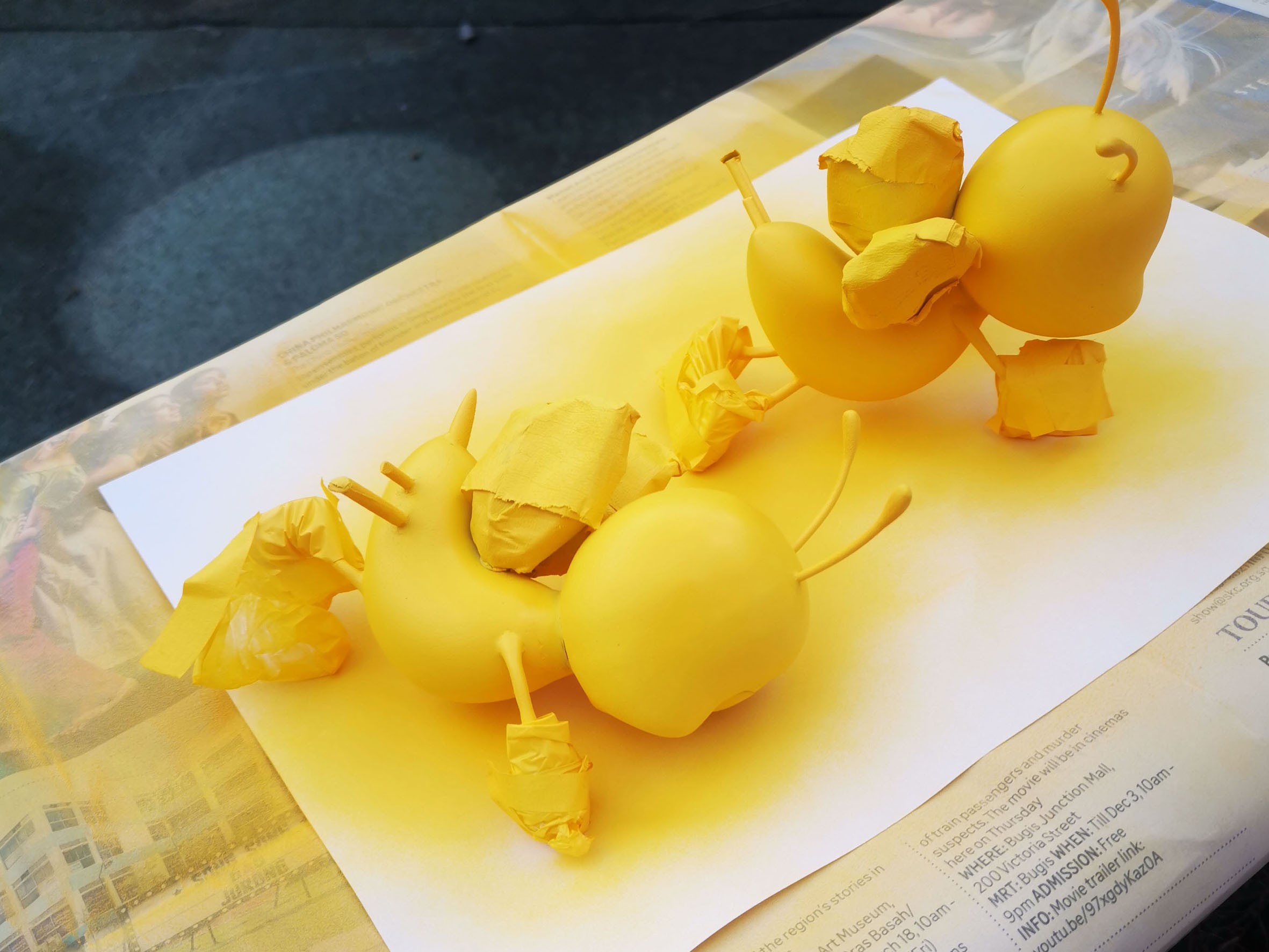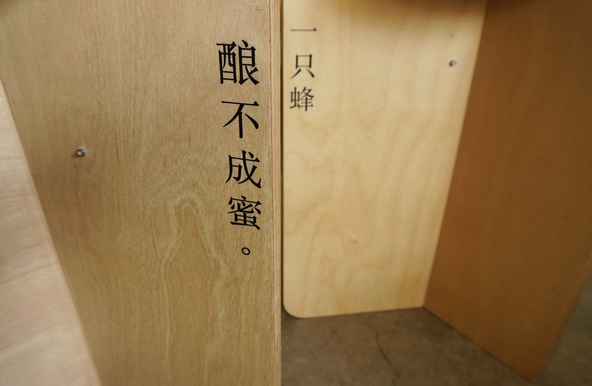 The two stools are designed to work as a pair. The Chinese proverb, 一只蜂酿不成蜜 means a solitary bee produces no honey, referring to teamwork. The meaning of the proverb is realised when the two stools are pulled in together. Flanking both sides of the stools are a pair of bees, a sculptural interpretation of the once ubiquitous Teamy the bee mascot for a national productivity campaign in Singapore in the 1980s. Through these stools, the artists wish to communicate the spirit of camaraderie. Human beings like the bees, are social animals and we need quality companionship as we work and play hard together.