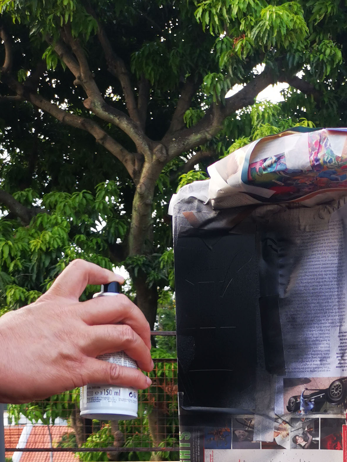 Spray Paint and Resin Sculpture on Wood